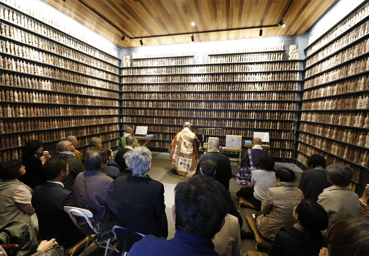 比叡山延暦寺の霊木『楓』をこの常住寺の復興の為に拝領し、「根本中堂楓プロジェクト」としても同時展開しながら、「叩き彫佛」三千躰を安置する三千神佛安寶堂を「本堂移築百年記念事業」として、常住寺境内に建立いたしました。
