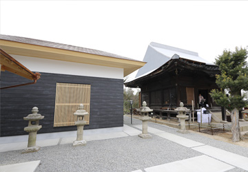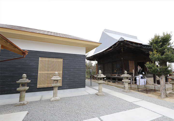本堂横の荼枳尼天堂、 山王堂跡地に完成した三千神佛安寶堂。